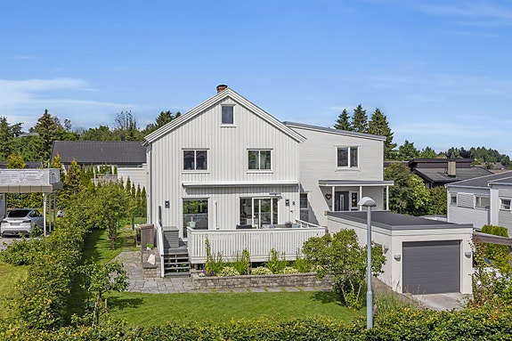 Fantastisk eiendom med tilbygg fra 2015 & 2020 - utleie, svært gode solforhold og opparbeidet hage med flotte uteplasser