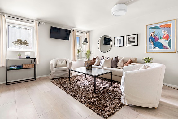 Svært attraktiv og tilbaketrukket 2-roms hjørneleil. i rolig sidegate. Totaloppusset i 2019, god standard og lave f.utg.