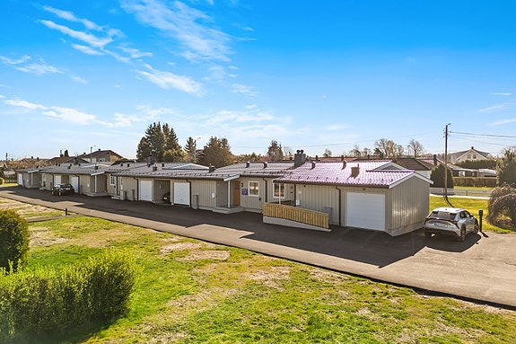 Her bor du i et veletablert og rolig nabolag, ideelt for etablerere og familier. Hverdagen er enkel med kort gangavstand til dagligvarebutikker, skoler og barnehager. Området byr også på fine turmuligheter i nærliggende skog og mark. Fra stuen er det utgang til egen terrasse, og boligen har en praktisk planløsning på ett plan.