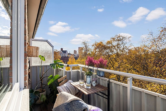 • Solrik og vestvendt balkong med sol fra kl. 13 til langt på kveld, ca 4m2
