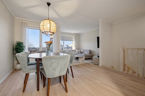 Innbydende rekkehus over to plan med flotte uteplasser | Fin utsikt fra østvendt balkong | Carport | Attraktivt område