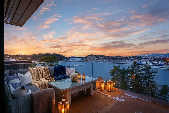 Moderne tomannsbolig med vestvendt fjordutsikt | Solrike uteplasser | Garasje | Hybel | 2 bad | 10 min fra sentrum