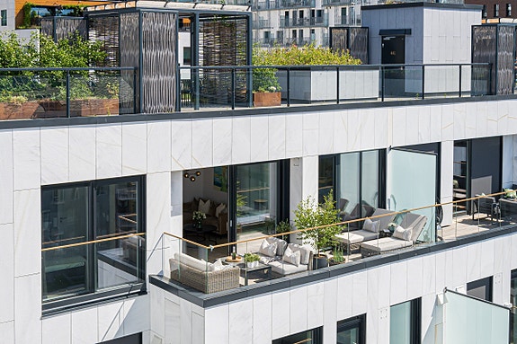 Unik og gjennomgående 3-roms fra 2018 i Eufemias Hage. Her får man følelsen av storby på den ene siden, og sjøluft på den andre. Leiligheten ligger øverst i byggets 8. etasje, med mye lys og himmel, unik følelse av å være usjenert midt i byen. Innvendig fremstår leiligheten meget tiltalende med høy standard.