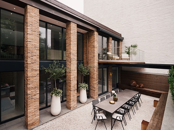 Et smykke; med raffinert teglfasade, generøse vindusflater og en sømløs overgang mellom inne- og uterom. Villaen har solrike uteplasser på totalt 75 m², en sjeldenhet i bydelen.