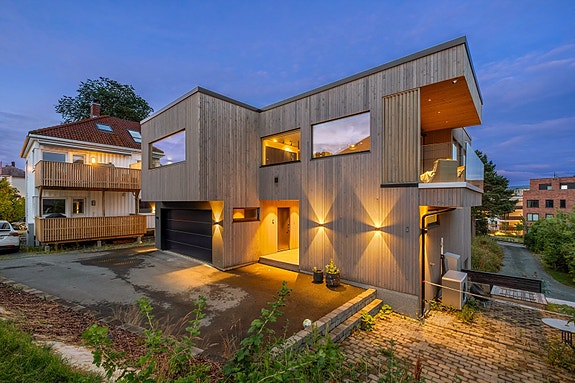 Lekker og nyere enebolig med byggeår 2018. Boligen ligger sentralt til i en blindgate på Bakkaunet, i familievennlige omgivelser, med gangavstand til Solsiden og sentrum av byen. Foto: Stian Hatling
