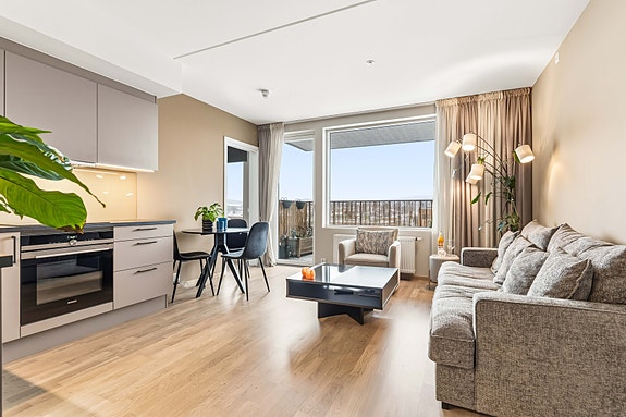 Moderne og lekker 3-roms andelsleilighet i 9. etg fra 2024 | Solrik balkong | IN-ordning | Sentralt | Lave omkostninger