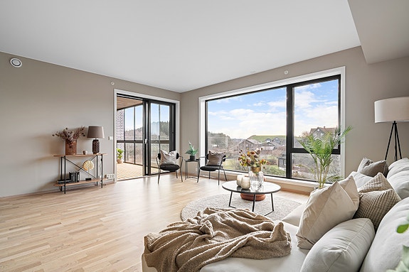 Velkommen til Tangarholen 10, H0303! Flott ferdigstilt leilighet med fin utsikt, gode solforhold og inneglasset balkong! Fotograf: Brian Engen
