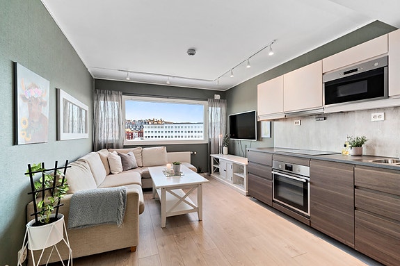 SJARMERENDE & AREALEFFEKTIV ENDELEILIGHET I HØY 5.ETASJE. Stort kjøkken 2018. Parkering utenfor. Perfekt for studenter.