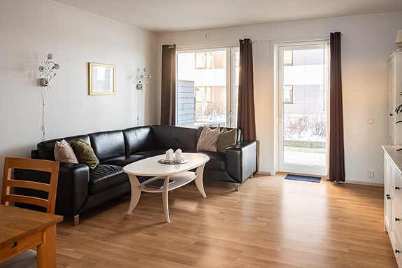 Meget flott og romslig 3-roms selveierleilighet med sørvendt terrasse | Fjernvarme og heis | Parkeringsplass i kjeller