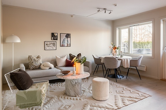 Stilren og innholdsrik 3-roms med attraktiv beliggenhet i ei trafikkstille og rolig gate.