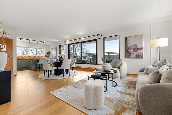 Velkommen til Bertrand Narvesens vei 43 - En stor 3-roms selveierleilighet med meget god planløsning og rikelig med naturlig lysinnslipp. Leiligheten har flott utsikt og en fantastisk terrasse som strekker seg langs hele leiligheten, et ekstra oppholdsrom på vår- og sommerhalvåret.