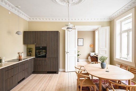 Gjennomgående hjørneleilighet i klassisk bygård fra 1894, ombygget og oppgradert i 2024. Leiligheten kombinerer moderne standard med klassiske detaljer som stukkatur, rosetter, to-fløyede dører med farget glass og gjennomgående originale tregulv. Generøs takhøyde og store vindusflater på to sider gir svært god romfølelse og rikelig dagslys. Rolig og attraktiv beliggenhet på Nedre Tøyen med kort gangavstand til kollektivtransport, parker, handel og serveringstilbud.