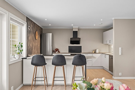 Moderne og innbydende halvpart i familievennlig boområde | Dobbel garasje | Innerst i rolig blindgate
