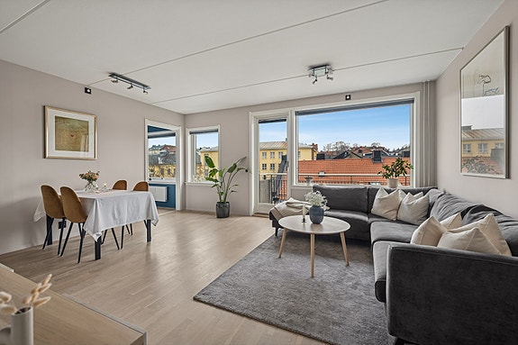 Velkommen til Møllergata 50! En lys og innbydende 2-roms selveier beliggende på populære Fredensborg med "alt" av fasiliteter og servicetilbud i umiddelbar nærhet. Leiligheten har en åpen stue-/kjøkkenløsning, romslig soverom med garderobeskap og utgang til en solrik nordvestvendt balkong på 4 m². Her får du store vindusflater som skaper en lys og luftig atmosfære i leiligheten og minimalt med innsyn. Med fasiliteter som balkong, heis, takterrasse, og gjennomgående god standard er dette en attraktiv og praktisk leilighet!
