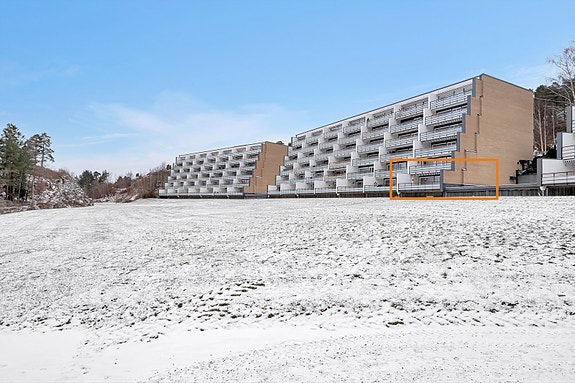 Leiligheten ligger i 1.Etasje og har en stor og solrik balkong og parkeringsplass i lukket garasjeanlegg med heis opp til leilighetens etasje.