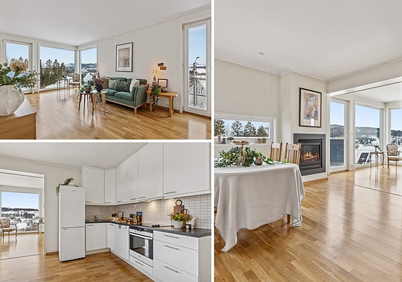 3-roms leilighet med flott utsikt og god planløsning | Balkong og peisovn | Barnevennlig og naturnært
