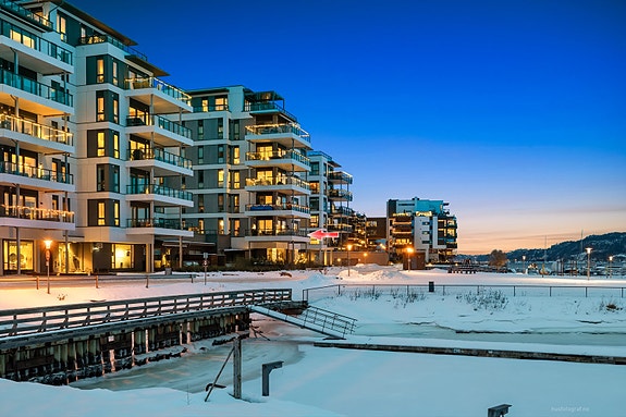 Fra leiligheten som er plassert i et moderne og stilig bygg på Nordre Jarlsberg Brygge, er det kort vei ned til idyllisk bryggeliv, sandstrand og fjorden.