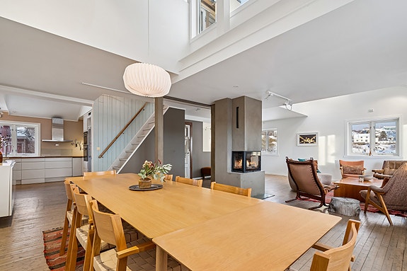 Leiligheten er sjarmerende innredet og har en spennende planløsning over 3 etasjer. Den ble i 2014 betydelig renovert og har moderne standard, samtidig som noe av det gamle særpreget er ivaretatt.