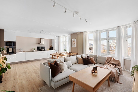 - Stor og åpen stue-/kjøkkenløsning på 33 kvm