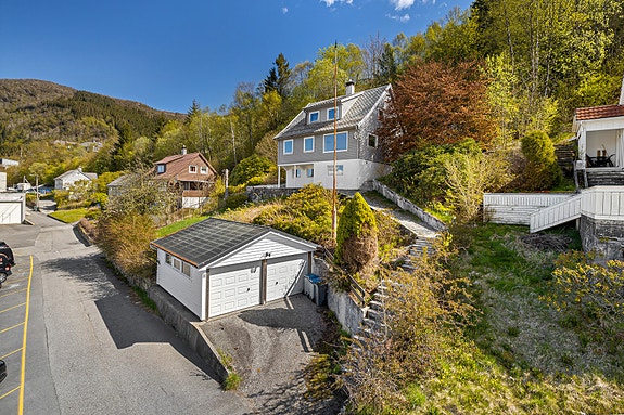 Innholdsrik enebolig over tre etasjer med dobbelgarasje. Stort potensiale. Oppgradering må påregnes.