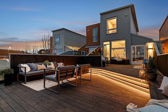 - Terrassen er utført i MøreRoyal Concise med rekkverk i glass og trappelys