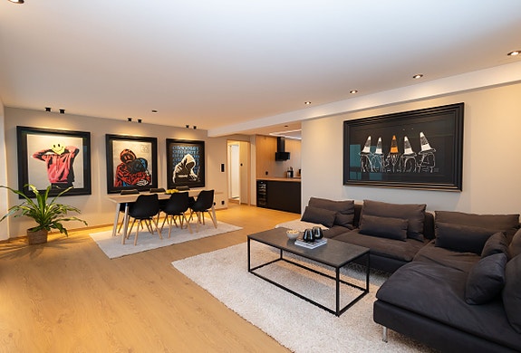 Det er moderne belysning med LED-striper på stue og kjøkken, som gir en lun stemning og setter et eksklusivt preg. Alle lysene i leiligheten kan styres via app, noe som gjør det både enkelt og praktisk i hverdagen. Leiligheten disponerer også en bod på 5m² i fellesarealet i kjelleren.
