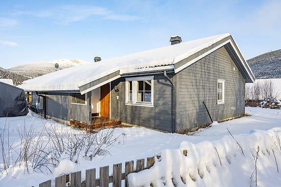 Her bor du i et rolig boligområde med korte avstander til barnehage, skole, ulike servicetilbud i Vinstra sentrum samt flere flotte tur- og fjellområder. Boligen grenser mot friområde og er del av en vertikaldelt tomannsbolig fra 1997 som går over ett plan. Boligen fremstår vedlikeholdt utvendig og innvendig. Planløsningen byr bl.a. på en lys entré/gang, åpen stue- og kjøkkenløsning der peisovnen skaper en lun atmosfære, 2 soverom og bad. Fra stuen går du rett ut på en vestvendt terrasse på ca 14 kvm. Vinduene gir godt lysinnslipp og overflater er i hovedsak holdt i lyse farger. Det er lagringsplass i innvendig bod og utvendig bod og parkering i frittstående garasje m/portåpner. Med alt på ett plan er dette et hjem som passer for mange livsfaser.