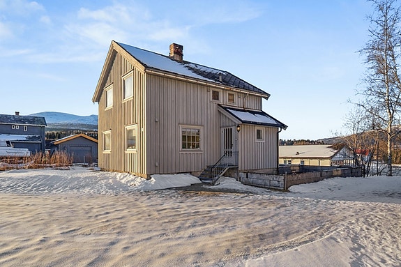 Innholdsrik enebolig i Meråker sentrum | To etasjer over kjeller | 3 soverom | Peis | Uthus | Oppussingsobjekt