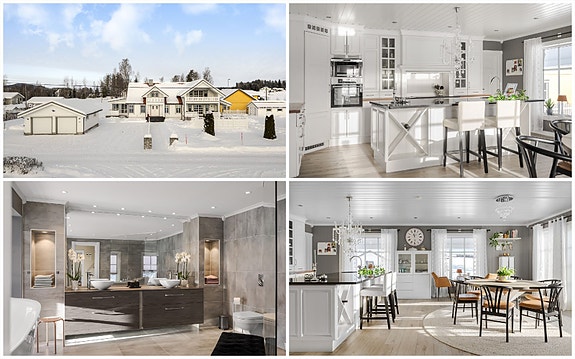 Stor, flott og innholdsrik enebolig med høy standard og jordvarme! Fine uteplasser, dobbeltgarasje, uthus og lekestue.