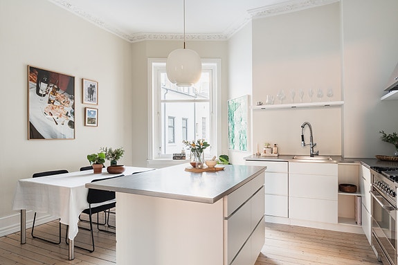 - Velutstyrt og delikat kjøkken med øy og spiseplass