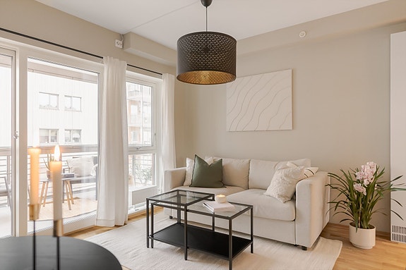 • Åpen og luftig stue-/kjøkkenløsning med store vindusflater.