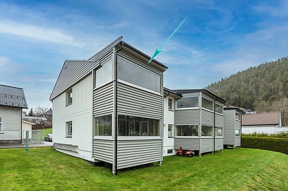 Endeleilighet i 2. etasje. Rolig beliggende innerst i stikkveg. Romslig innglasset balkong som kan benyttes som et ekstra rom store deler av året. Leiligheten er sydvestvendt og har således gode solforhold. Noe utsikt mot kanalen.