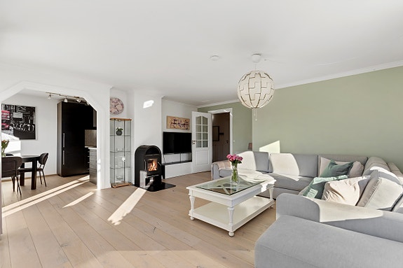 Leilighet over 2 plan m/innredet loft og innglasset balkong | Peisovn | Rolig beliggenhet i blindgate | Parkering
