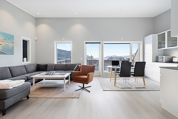 Nyere og attraktiv 3-roms leilighet fra 2021 i 2.etg av 4-mannsbolig på Iden på Sjøholt i Ålesund kommune. Fra leiligheten har en nydelig utsikt vestover mot Ørskogvika og Storfjorden. Både sydvendt og vestvendt balkong med gode solforhold. Leiligheten inneholder gang, 2 soverom, bad, vaskerom og en flott åpen stue/kjøkken-løsning med god takhøyde og store vinduer. Dette gir en god romfølelse og utnytter lysforholdene og den nydelig utsikten til det fulle. I tillegg tilhører carport med el-billader og en utebod. Gangavstand til nyere barne- og ungdomsskole samt flott idrettsanlegg like i nærområdet. Fine tur- og rekreasjonsområder med bla. Elvastien like i nærheten. Kort avstand til Sjøholt sentrum, ca. 15 min kjøretur til Digerneset, ca. 25 min til Moa og ca. 35-40 min til Ålesund.