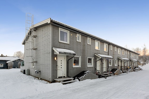 Boligen er plassert i enden av rekkehuset. Den har et moderne uttrykk med bruk av en tidløs, men samtidig tidsriktig fargepalett. Innvendig finnes det bl.a. en romslig stue, moderne kjøkken, flislagt baderom og 3 gode soverom. Utvendig finnes det en større terrasse, samt et hyggelig utemiljø tilrettelagt for lek og sosialisering med husker, dumpe og krakk. Parkering kan enkelt gjøres i felles garasjerekke, hvor boligen disponerer 1 biloppstillingsplass.
