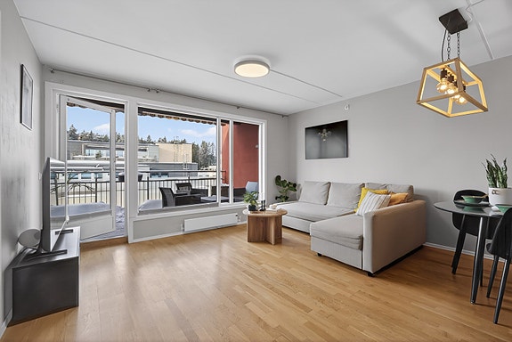 Leiligheten ligger tilbaketrukket i etasjen og har kun én nabo på samme plan, noe som gir en privat bokvalitet. Her bor du stille med kort vei til butikker, servicetilbud og kollektivtransport. Buss tar deg enkelt til både Lillestrøm og Oslo sentrum, og Østmarka ligger like i nærheten med gode turmuligheter.