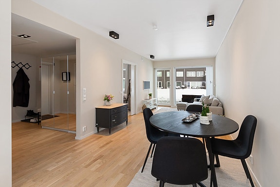 Velkommen til Hjeramoen 14A - en stor, lys og moderne 2-roms leilighet med en god planløsning. Foto: Margrethe Madsbakken