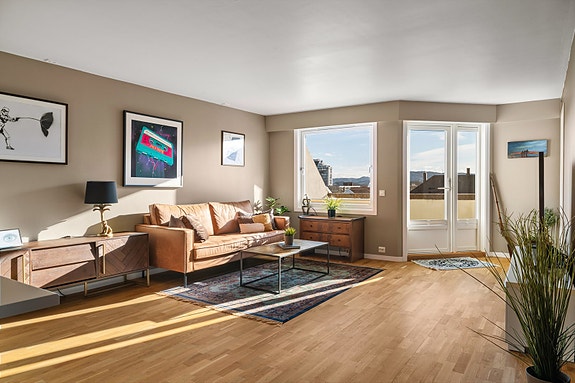 Velkommen til Henrik Steffens gate 20, en lys og innbydende 2-roms selveierleilighet. Leiligheten ligger i byggets øverste etasje og byr på en praktisk planløsning med god romfølelse og fine lysforhold.
