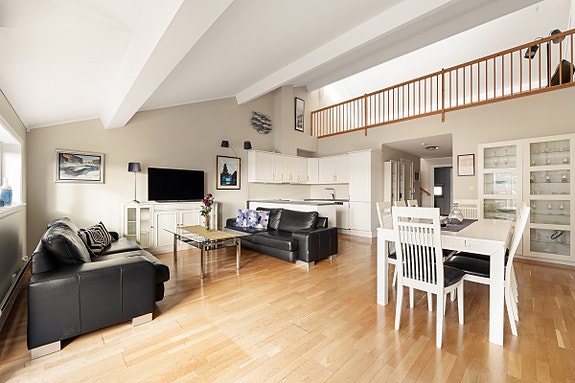 - Luftig himlingshøyde over stue og kjøkken