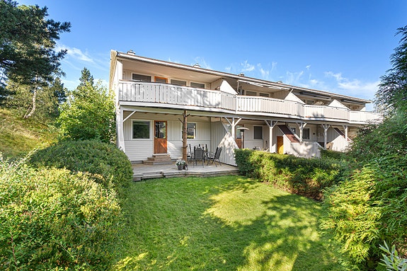 Et flott enderekkehus med sentral og barnevennlig beliggenhet. Ligger ved enden av en vei med lite gjennomgangstrafikk.