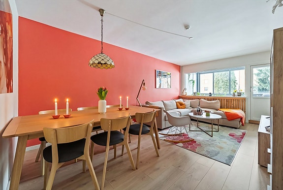 Dette er en attraktiv 2-roms leilighet med god standard og gjennomgående planløsning, beliggende i høy 1. etasje på Rødtvet. Leiligheten har en sentral og praktisk beliggenhet med gangavstand til skole, barnehage, dagligvarebutikk og treningssenter. I tillegg har du kort vei til T-bane, Lillomarka med flotte tur- og rekreasjonsmuligheter, samt et variert utvalg av servicetilbud i nærområdet.