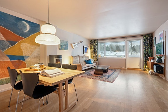 Stor 4-roms selveierleilighet i svært attraktivt område med innglasset balkong og nytt kjøkken | Nær marka | Vedovn