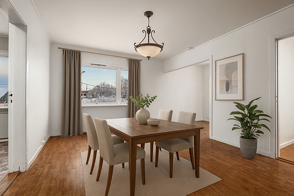 - Åpen løsning mellom stue og spisestue.