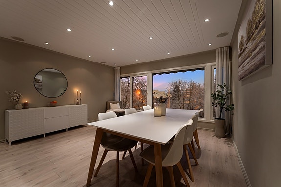Rekkehuset har blitt betydelig oppusset i senere tid, med bla. nytt kjøkken i 2016, bad + wc i 2023, samt el.anlegg og rørfornying i 2025. Fin familiebolig over tre plan, med entré/gang, stue og kjøkken i 1.etg. Familietilpasset løsning med 3 sov, bad og wc i 2.etg. U.etg består av innredet rom, vaskerom og bod. Utendørs er det 36 m² solrik og usjenert terrasse, samt utebod ved inngangspartiet. Parkering i carport.