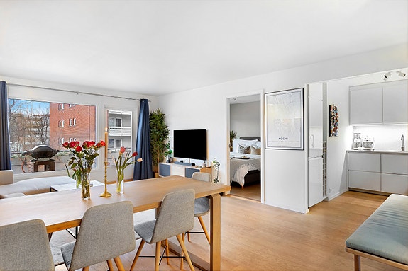 2-roms hjørneleilighet| Sydvestvendt balkong | Skjermet & sentral beliggenhet | Heis| Garasjeleie* | Lave FK| Oppussing!