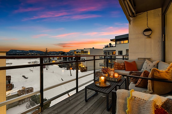 Luftig og lekker 2-roms med høy standard og vestvendt balkong med god utsikt og solforhold. Garasjeplass med lader
