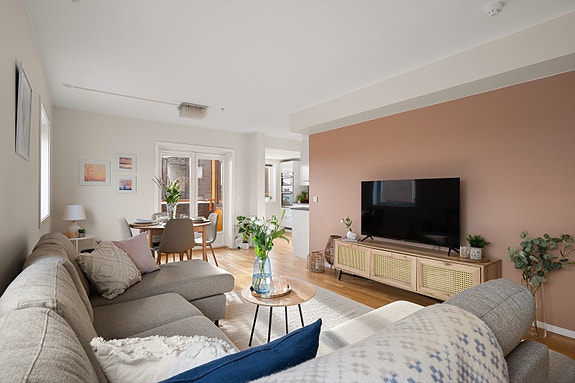 Lys og stilren 3-roms selveierleilighet med overbygget, solrik balkong og parkering i lukket anlegg