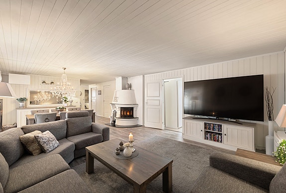 Her får du en romslig enebolig over fire plan med bl.a kjøkken, fire soverom, to bad og et teknisk rom. Her har du romslige, skjermede uteplasser omkranset av diverse beplantning. Boligen har en pent opparbeidede uteplasser, og en romslig garasje., samt utvendige p-plasser.