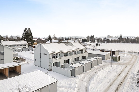 Praktisk rekkehus med endebeliggenhet, to etasjer og tre soverom sentralt på Kirkenær - Carport og egen utebod