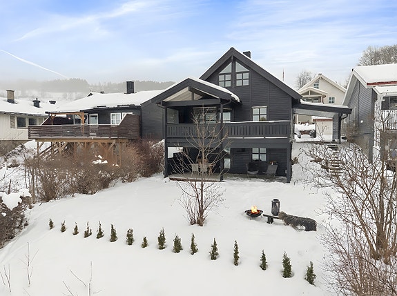 Boligen strekker seg over tre plan og har en romslig og funksjonell planløsning. Den inneholder blant annet stor stue, kjøkken, fire soverom, kontor, bad, toalettrom og vaskerom. Det er gode lagringsmuligheter i både innvendige og utvendige boder. Parkering skjer i carport tilknyttet boligen eller på egen gårdsplass.